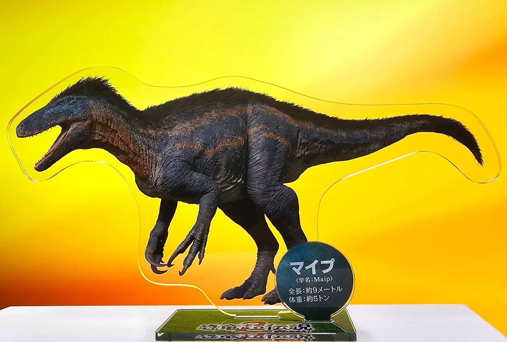全長およそ10mにもなるとされた巨大肉食恐竜マイプの高精細CGをアクリルスタンドにしました。