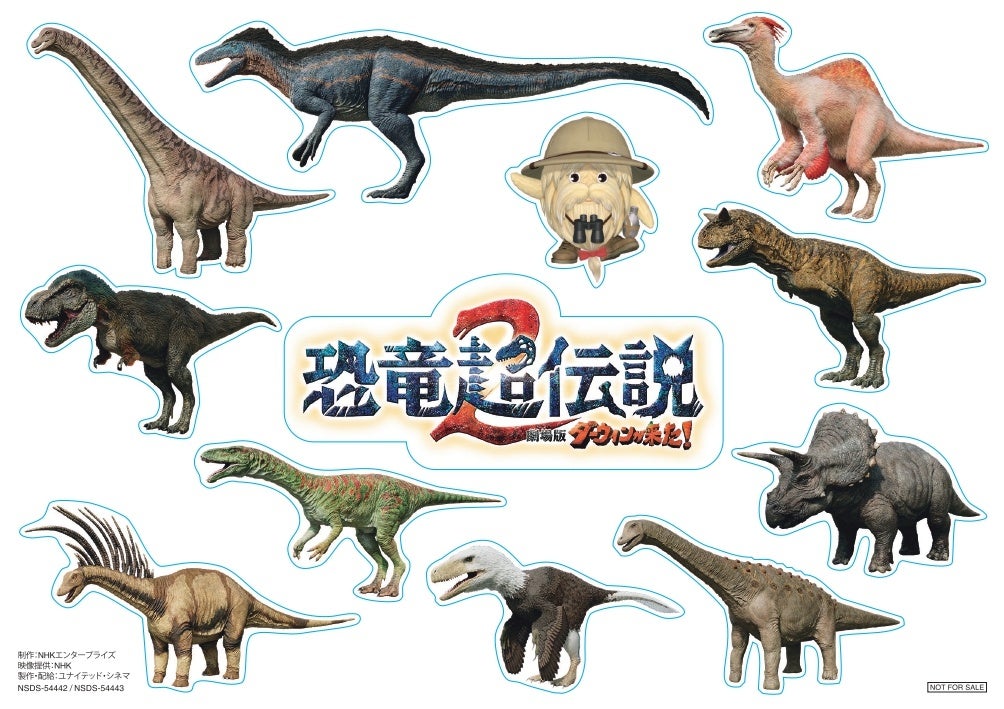 さらに、映画に登場する恐竜たちのオリジナル特製シールも封入!ティラノサウルスやトリケラトプスなどおなじみの恐竜をはじめ、今回の映画で大活躍するプエルタサウルスや、首にそびえ立つトゲが特徴的なバジャダサウルスの姿も!!