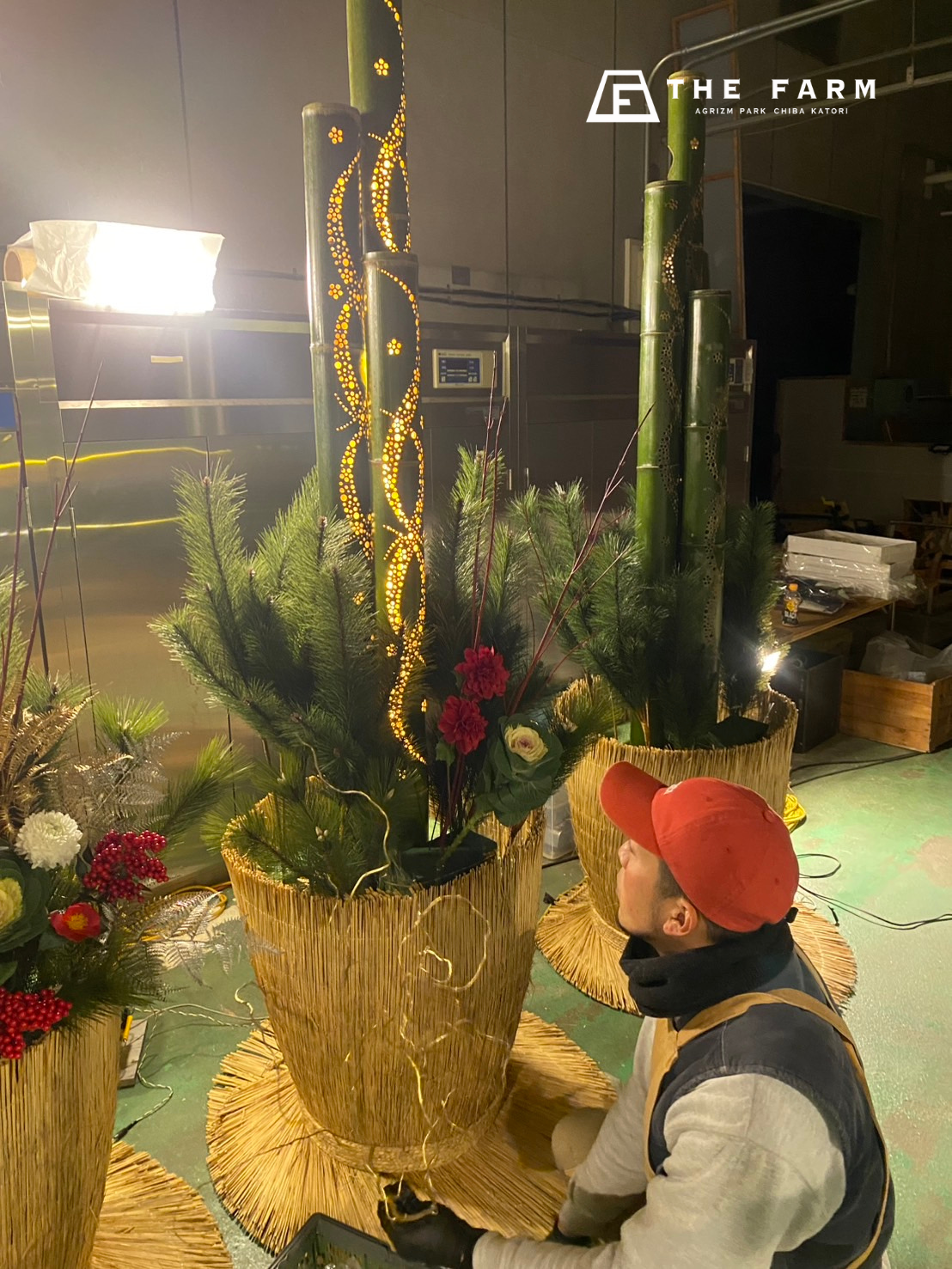 株式会社ザファーム(本社:千葉県香取市、代表取締役:武田 泰明 以下、ザファーム)が運営する、農園リゾートTHE FARM内の温浴施設「おふろcafé かりんの湯」は、地元・香取市佐原を中心に活動する「佐原 竹あかり」が手がけた門松を購入し、出入口前に設置いたしました。
