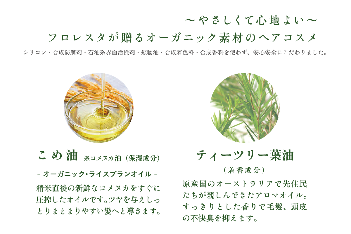 【フロレスタ ネイチャーヘアセラムこだわりの成分】