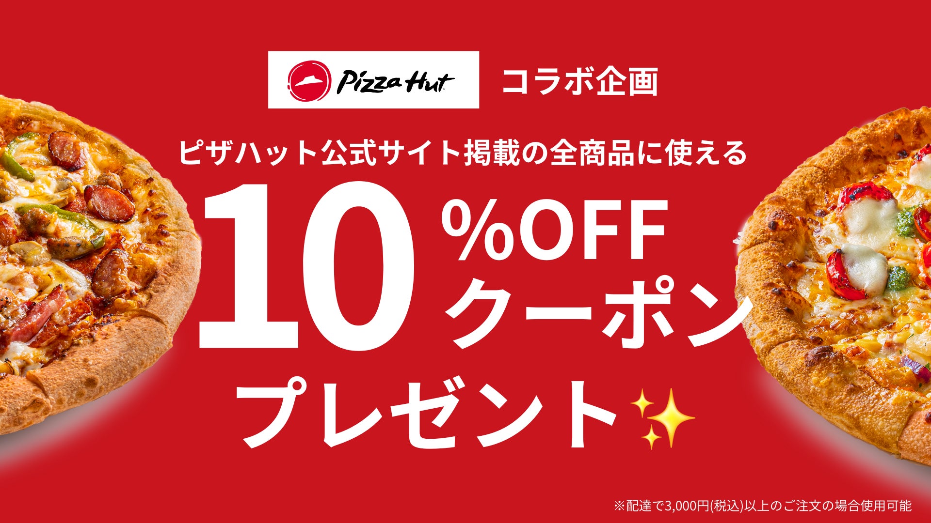 内容:大会期間中にスペースを予約し、予約時の詳細欄に合言葉「野球観戦にはピザ!」と入力いただいた方へ、ピザハット公式サイト・アプリで使える10%OFFクーポン(配達で3,000円(税込)以上のご注文をいただいた場合に利用可能)をメールでお届けします。