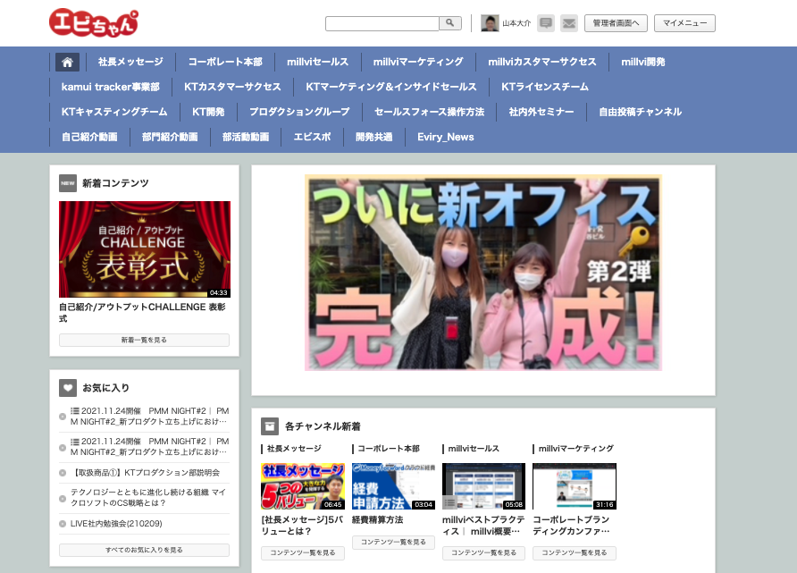 クローズドな環境で動画配信が可能な「millviポータル」を利用し、貴社専用の 動画社内報システムで社内エンゲージメント向上に貢献します。