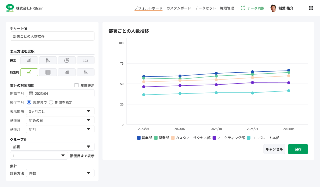 ※「時系列グラフ」のデータ抽出元はHRBrain社員名簿に登録されたデータになります。