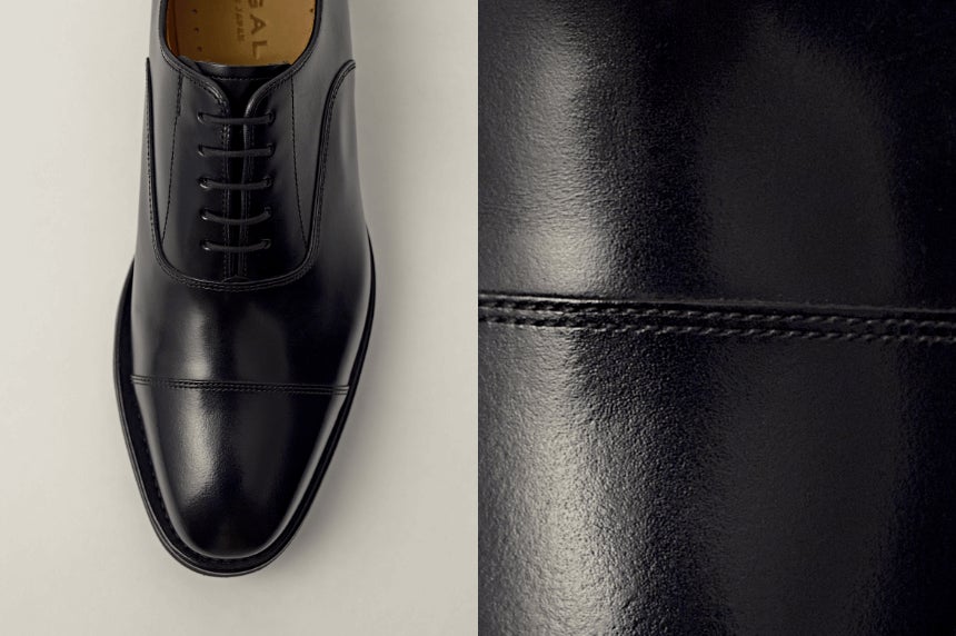 リーガル別注では、その機能性をキープしたまま、ドレスシューズにもなじむミニマルなデザインに仕上げました。細身の木型にも収まるようボリューム感や貼り付け位置も調整し、スタイリッシュな見栄えになるようこだわりました。