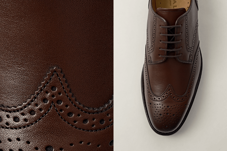 木型はクラシカルなブリティッシュラストを採用しました。足のシルエットを美しくみせる黄金比を徹底的に追求し、つま先の長さと横幅のバランスを整えています。もちろん、足にもなじみやすく、見た目の美しさと履き心地にこだわった、グッドイヤーウエルト式製法の新提案シューズです。