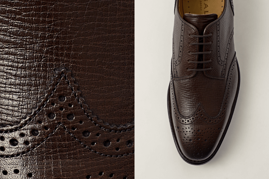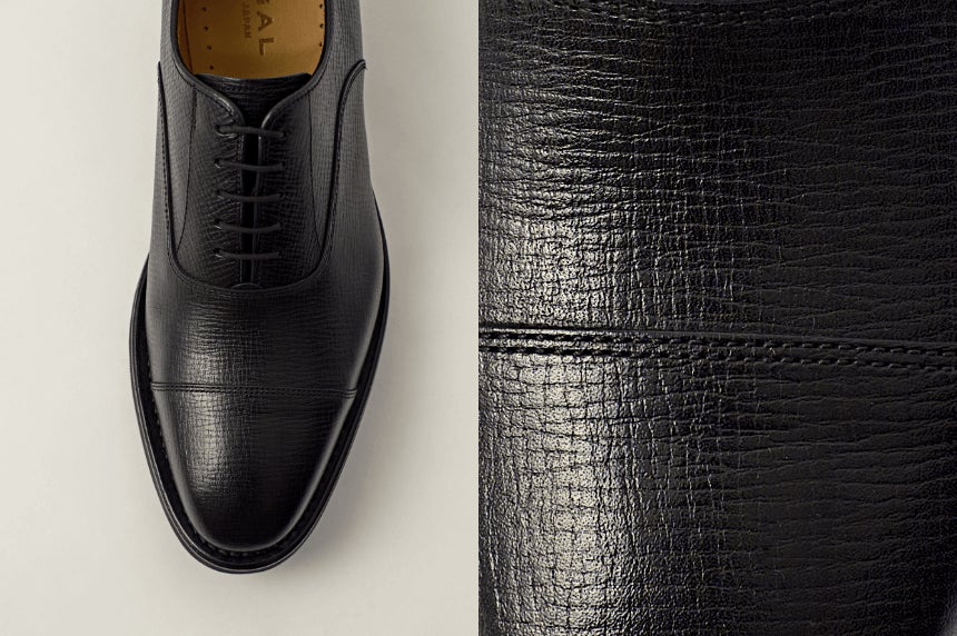 クラシックな風合いと、傷を目立ちにくくする効果を持つ国内タンナーの型押しレザー。