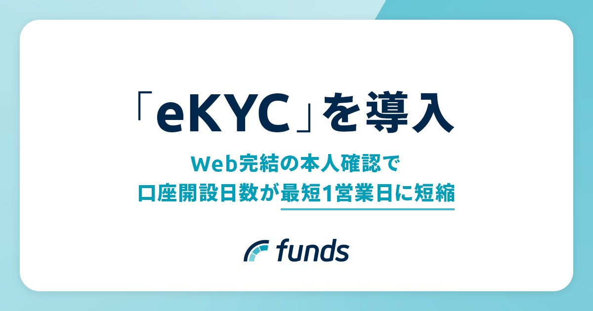 しかし、従来の口座開設における本人確認には、ご自宅での郵便物の受け取りが必要となることから、口座開設を完了するまでに通常5営業⽇程度を要します。そこで当社は、この度、よりスピーディーに口座開設を行っていただけるよう、オンラインで完結する本人確認(eKYC*2)を導入することといたしました。最短で1営業日で口座開設を完了させることができ、導入前と比較し早期にFundsでの投資を始めていただくことが可能となります。