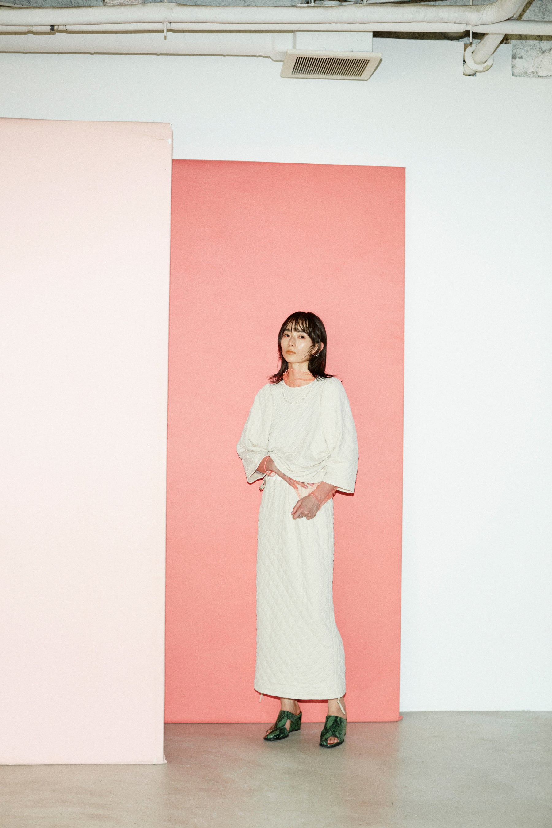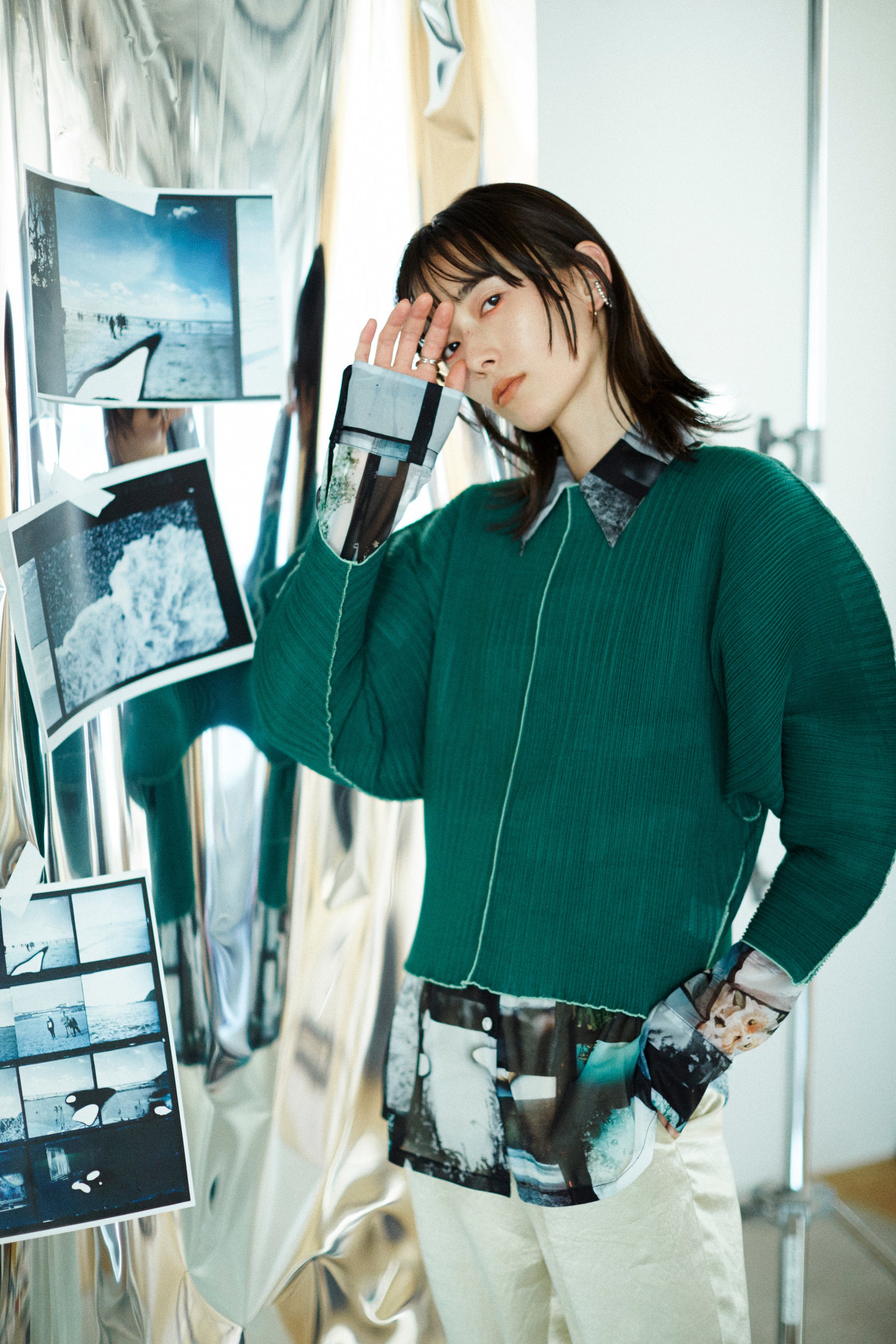 シアーな素材のセットアップ&立体的なシルエットのビッグTはアーティスティックで存在感のあるアイテムに仕上がりました。