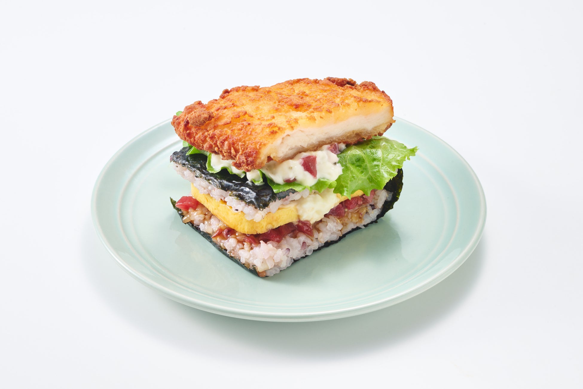 食感にこだわったポークミートと、やさしい味わいのたまご焼を挟みました。黒こしょうのパンチの効いたポークミートと、アクセントのからしマヨネーズとのコンビネーションが最高です。