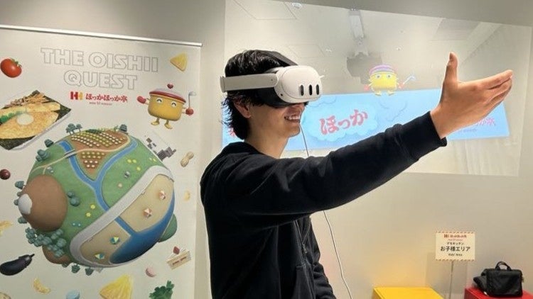 イベント期間中『THE OISHII QUEST』と題し、「惑星ハークスレイ」を舞台に、野菜の収穫体験をはじめとした様々な「おいしい」を集めるMR(Mixed Reality)体験が可能です。MRとは、現実世界と仮想世界を融合させた技術のことで、専用の「MRゴーグル」を装着していただくことで、没入感のある新感覚のインタラクティブ体験を楽しむことができます。