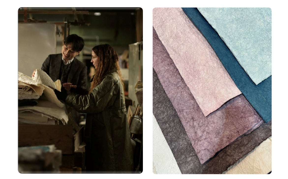 2023年に選出された、和紙卸業を営む株式会社オオウエの大上陽平氏とオランダ人デザイナーメイ・エンゲルギール氏のペアは「和紙」を使ったクッションカバーの開発に挑戦しました。廃棄素材をリサイクルし、京都の草木染め職人によるエシカルな染色を施した和紙を使用した商品は2024年3月6日、7日に開催された京都ギフトショーで公開されました。