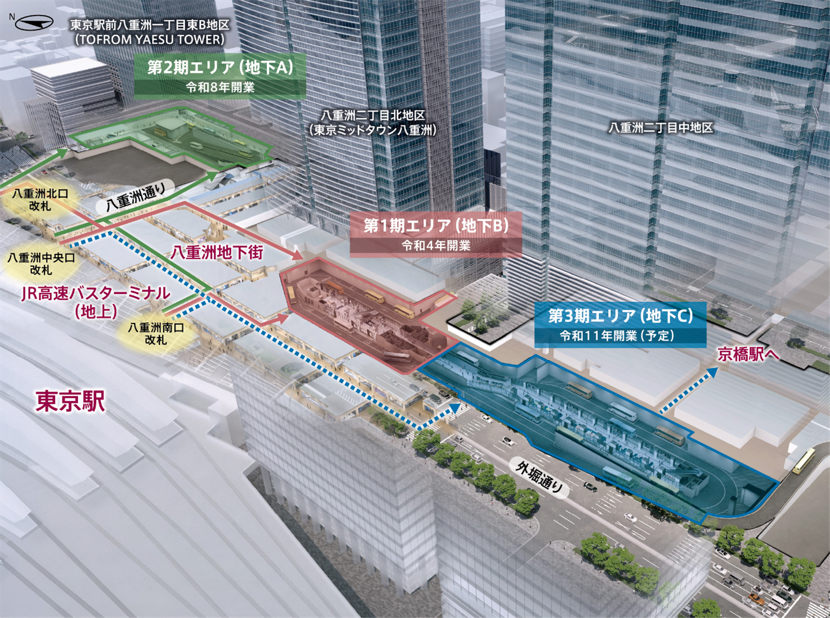 第2期エリア(地下A:乗降用7バース+待機用2バース)…2026年3月開業