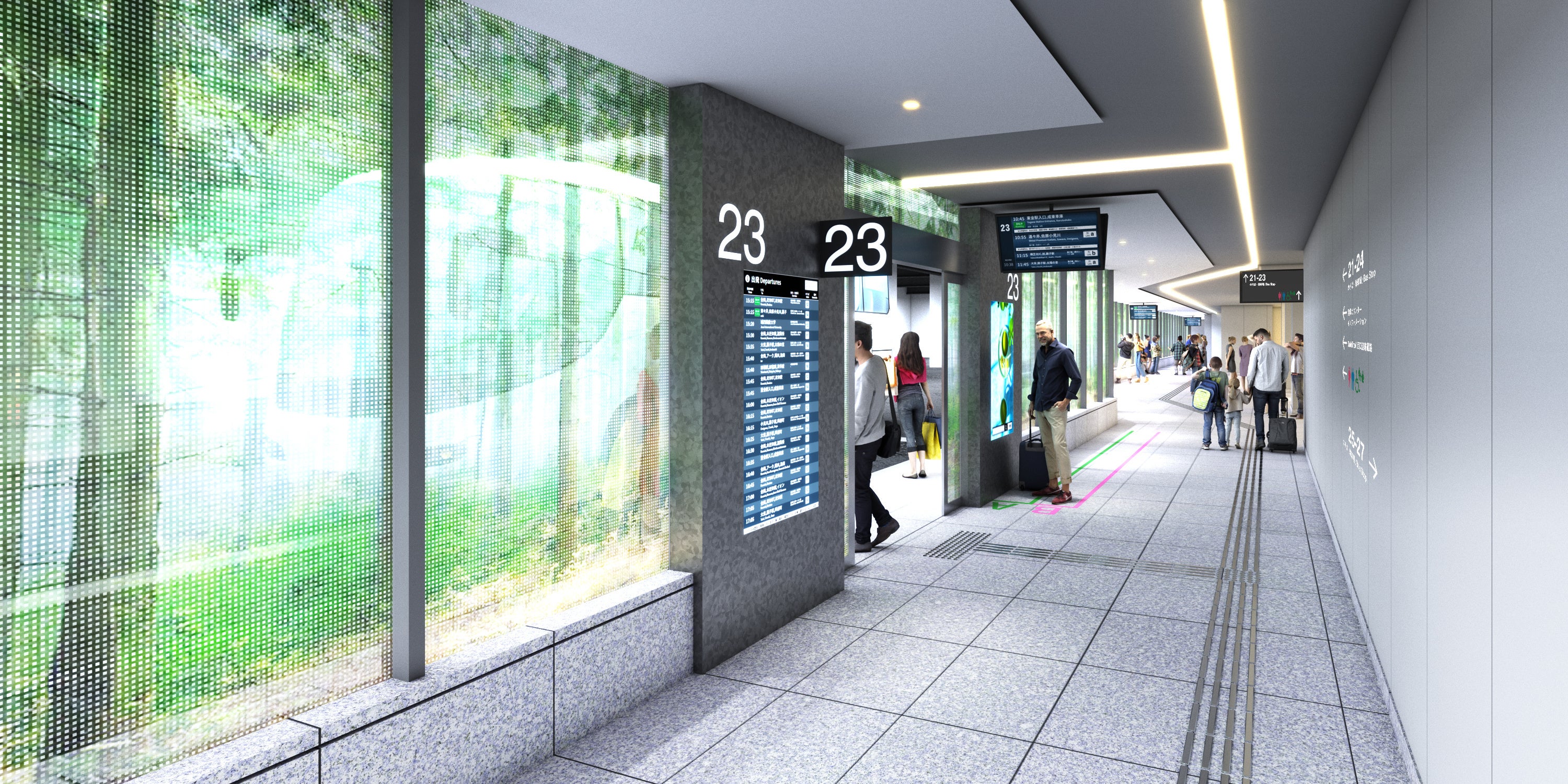 全体開業時には乗降用20バース・待機用8バースを備える国内最大級の高速バスターミナルとなる予定です。