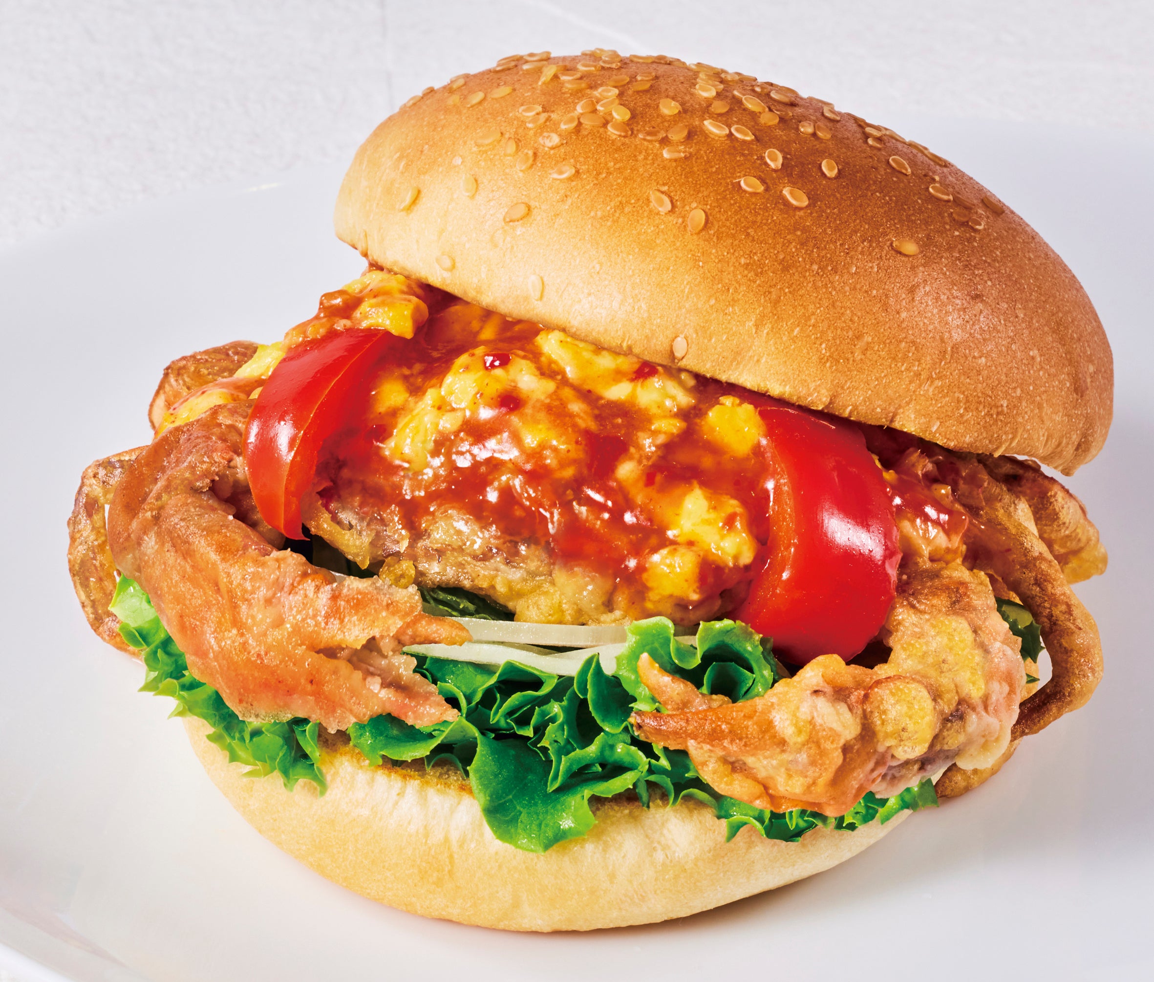 “カニ料理の王様”と言われるシンガポールの人気グルメ「チリクラブ」をバーガーで再現。1匹まるごと揚げたソフトシェルクラブがインパクト大!