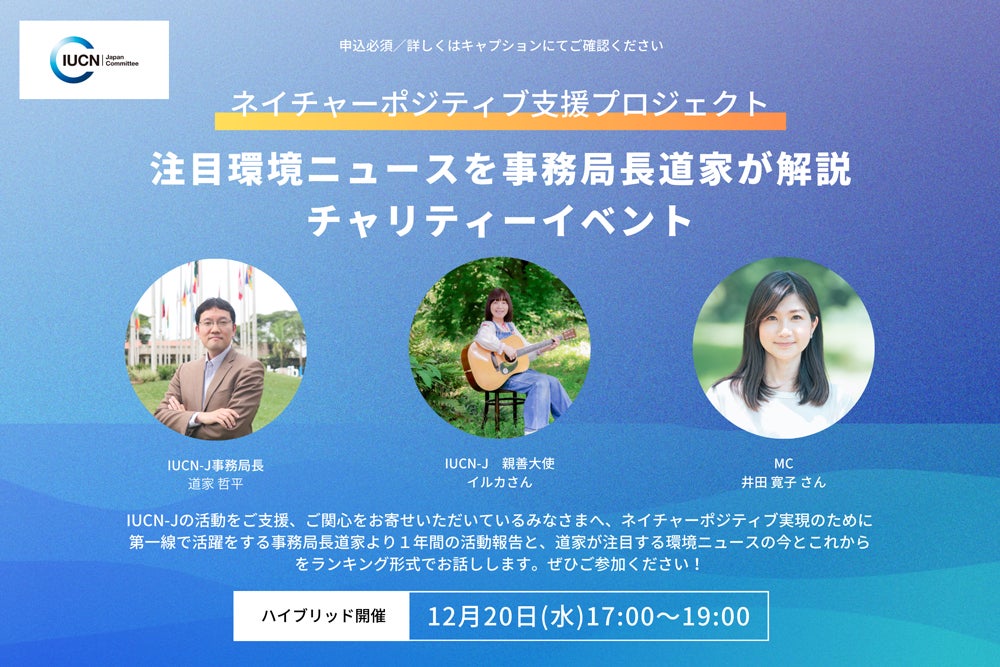 【イベント】12月20日(水)ネイチャーポジティブ支援プロジェクト「注目環境ニュースを事務局長道家が解説 チャリティーイベント」開催!