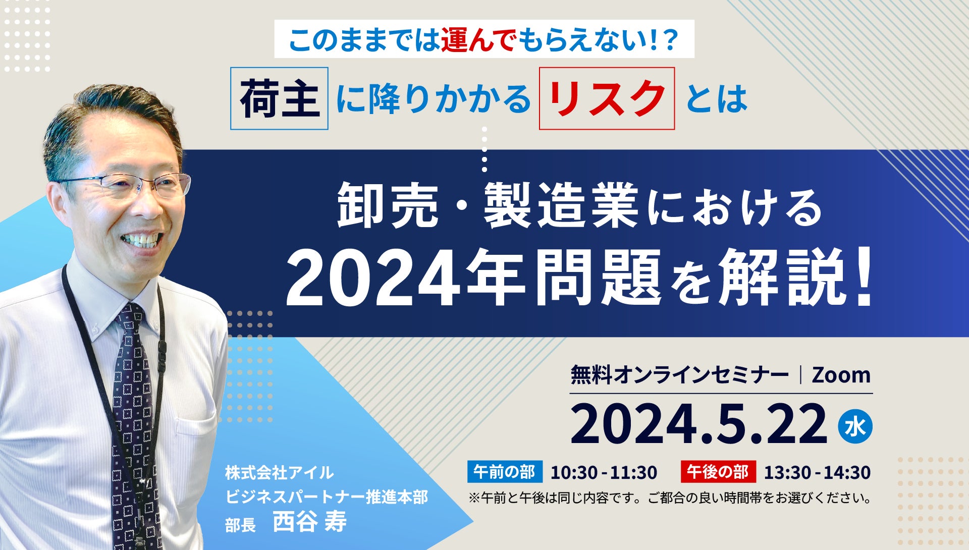 アイル、「 “このままでは運んでもらえない!?荷主に降りかかるリスクとは” 卸売業・製造業における2024年問題を解説 」無料オンラインセミナーを開催
