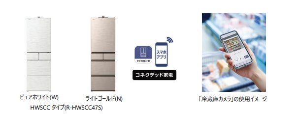 日立グローバルライフソリューションズ株式会社は、冷蔵室のドアを開けた際に自動で撮影し、外出先などからスマートフォンアプリで冷蔵室内の食材をチェックできる「冷蔵庫カメラ」(*1)を搭載した冷蔵庫のラインアップに、本体幅600mmでシングルドアタイプの大容量冷蔵庫「まんなか冷凍 HWSCCタイプ」R-HWSCC47S(定格内容積470L)を追加し、10月中旬から発売します。