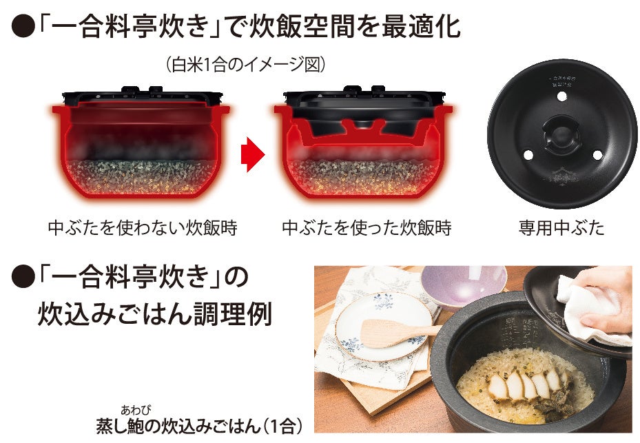 また少量のお茶碗一膳分(0.5合)や炊込みごはんにも対応。一膳でも料亭のような炊きたてごはんをおいしく召しあがっていただけます。