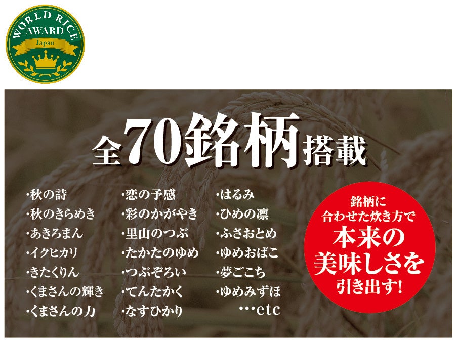 「銘柄巧み炊きわけ」が70銘柄に対応
