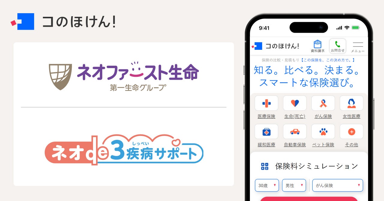 保険の一括比較・見積もりサイト「コのほけん!(https://konohoken.com/)」を運営するSasuke Financial Lab株式会社(本社:東京都千代田区、代表取締役:松井 清隆)は、ネオファースト生命保険株式会社(本社:東京都品川区、代表取締役社長:徳岡 裕士)の「ネオ de3疾病サポート」の取り扱いを開始したことをお知らせ致します。