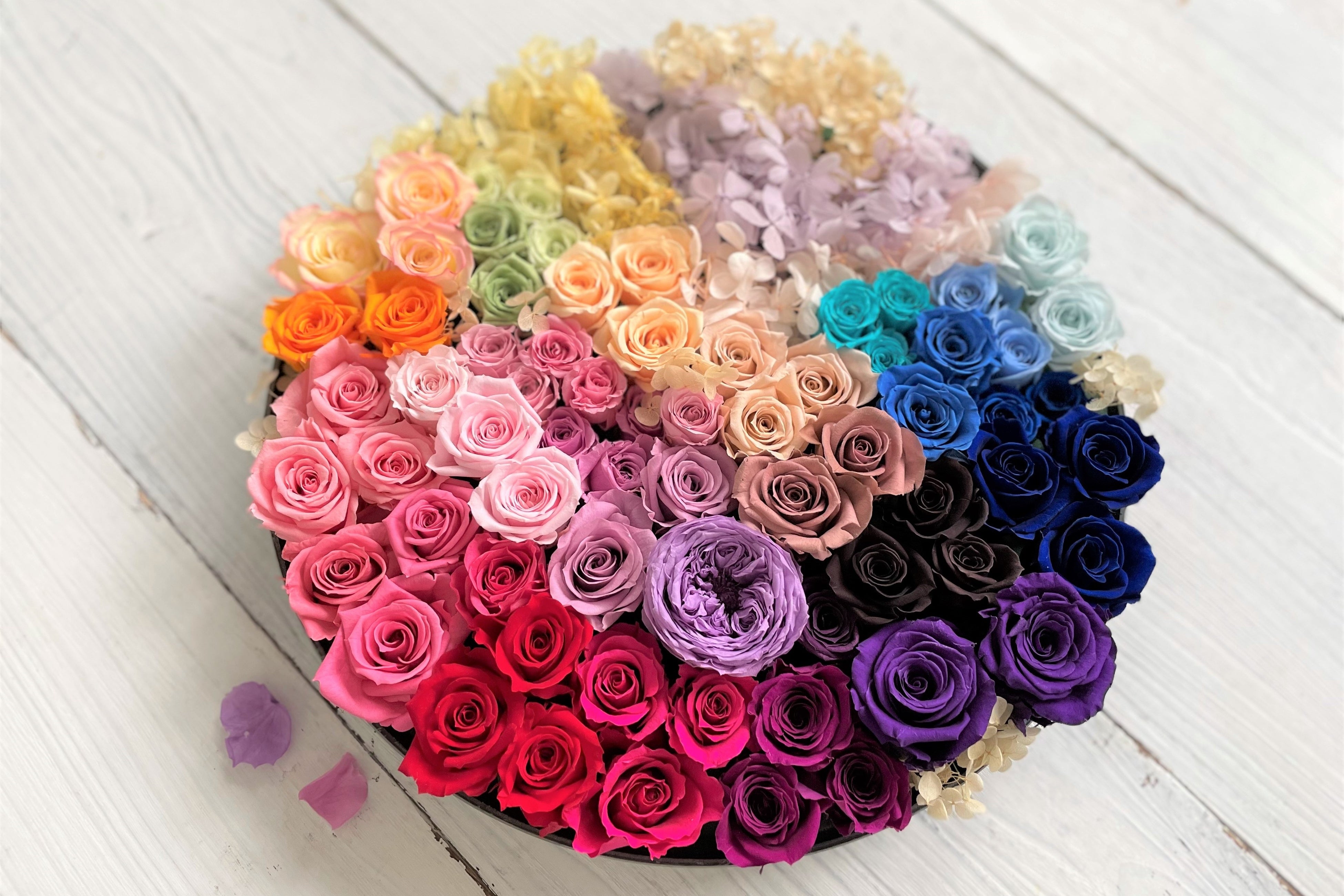 - 日持ちを気にする必要もなくお手入れも簡単、美しさが長く続く一点もののため、お祝い花に最適