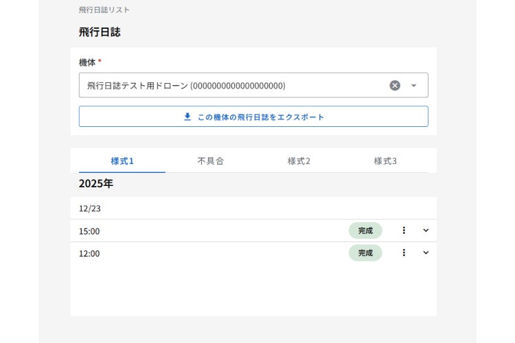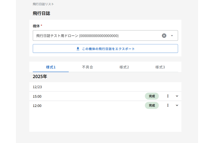 ■飛行日誌のエクスポート:報告用フォーマットで一括出力