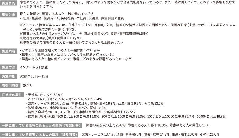 「障害のある人と一緒に働くことに関する実態調査」の結果を発表