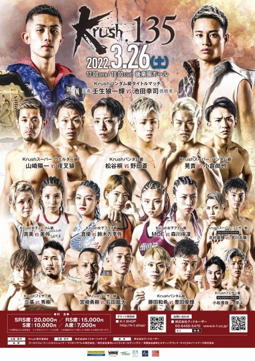 なお「Krush.135」3.26(土)後楽園大会の模様はABEMAにて17:30~完全生中継されます。