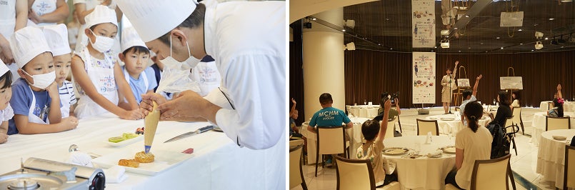 最後はお楽しみのお食事タイム。先ほど自分たちが作ったお料理が一流のホテルスタッフにより次々とサーブされてくる様子に、嬉しさと驚きで顔がほころぶ子どもたちの姿が印象的でした。