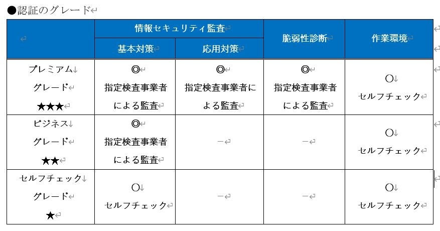 本日その2024年版として、セルフチェックグレードを新規追加した新たなプログラムを発表いたします。今までは第三者検査機関による監査等を必須としたビジネスグレード(ダブルスター★★)と、プレミアムグレード(トリプルスター★★★)の2種類だったものに加え、基本対策への適合性について、セルフチェック結果とその証跡(エビデンス)の確認により認証するセルフチェックグレード(シングルウスター★)をラインナップしました。