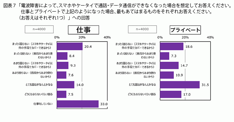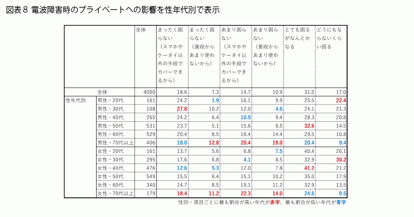 ただ、20代、30代の男性は「まったく困らない(スマホやケータイ以外の手段でカバーできるから)」と回答している人も2割います。同じ年代であっても、影響の大小は一概に語ることができないようです。