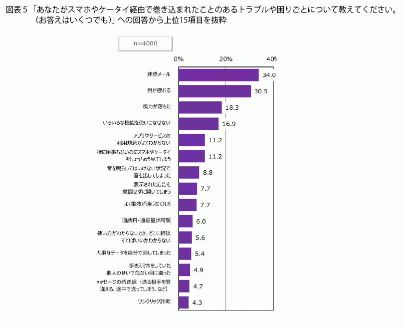- スマホの2大困りごと「迷惑メール」と「目の疲れ」