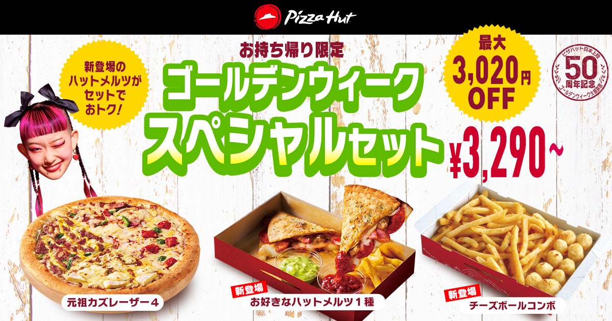 ピザハットは、日本上陸50周年の特別な「ゴールデンウィーク大感謝祭」にて、3つの超おトクなセットをご用意しました!