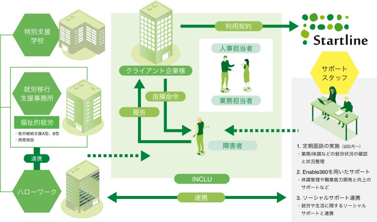 働く障害者は、INCLUをご利用いただいている企業様に就職することになります。