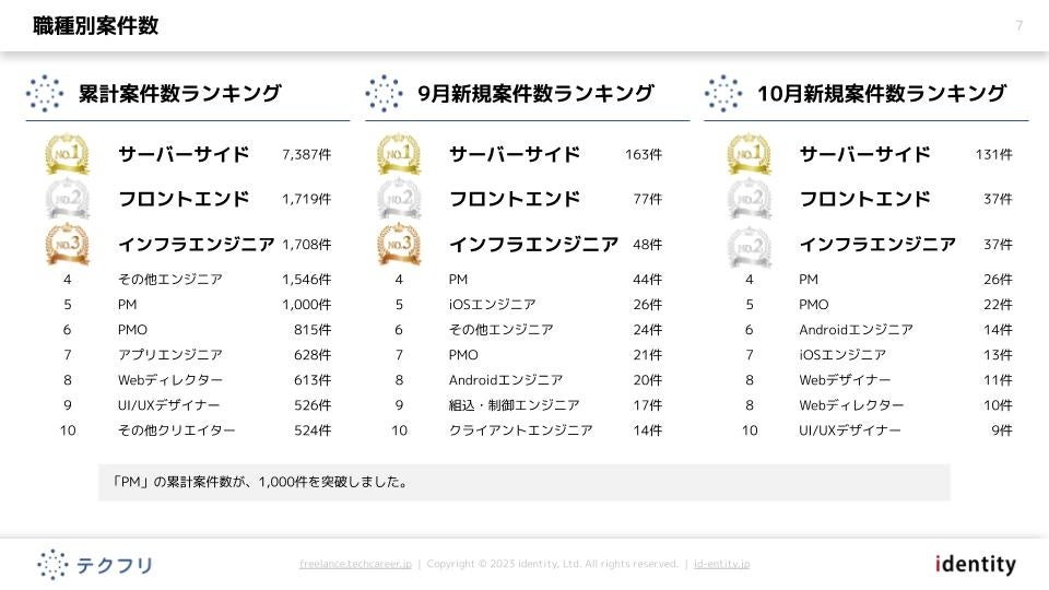 PM(プロジェクトマネージャー)の累計案件数が、1,000件を突破! IT案件市況動向レポート2023年10月版を公開