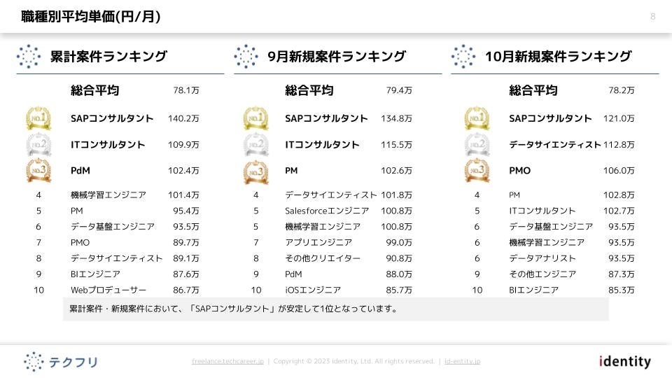 9月度と比較した10月度のデータや、テクフリ全体のデータなど、より詳細なレポートは下記URLよりダウンロードいただけます。案件の市況感を知りたい方や、キャリアアップのために情報収集をしたい方は、ぜひダウンロードくださいませ。
