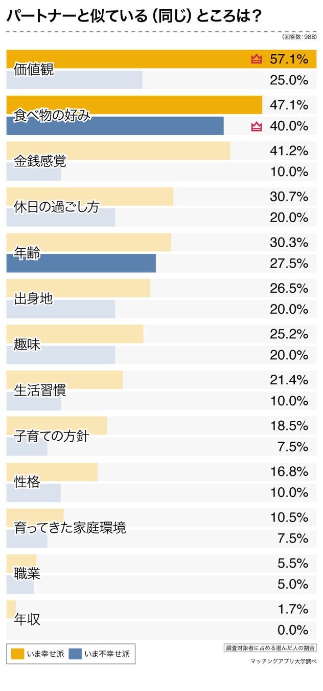 ・パートナーとの共通点が多ければ幸せを感じやすいのか