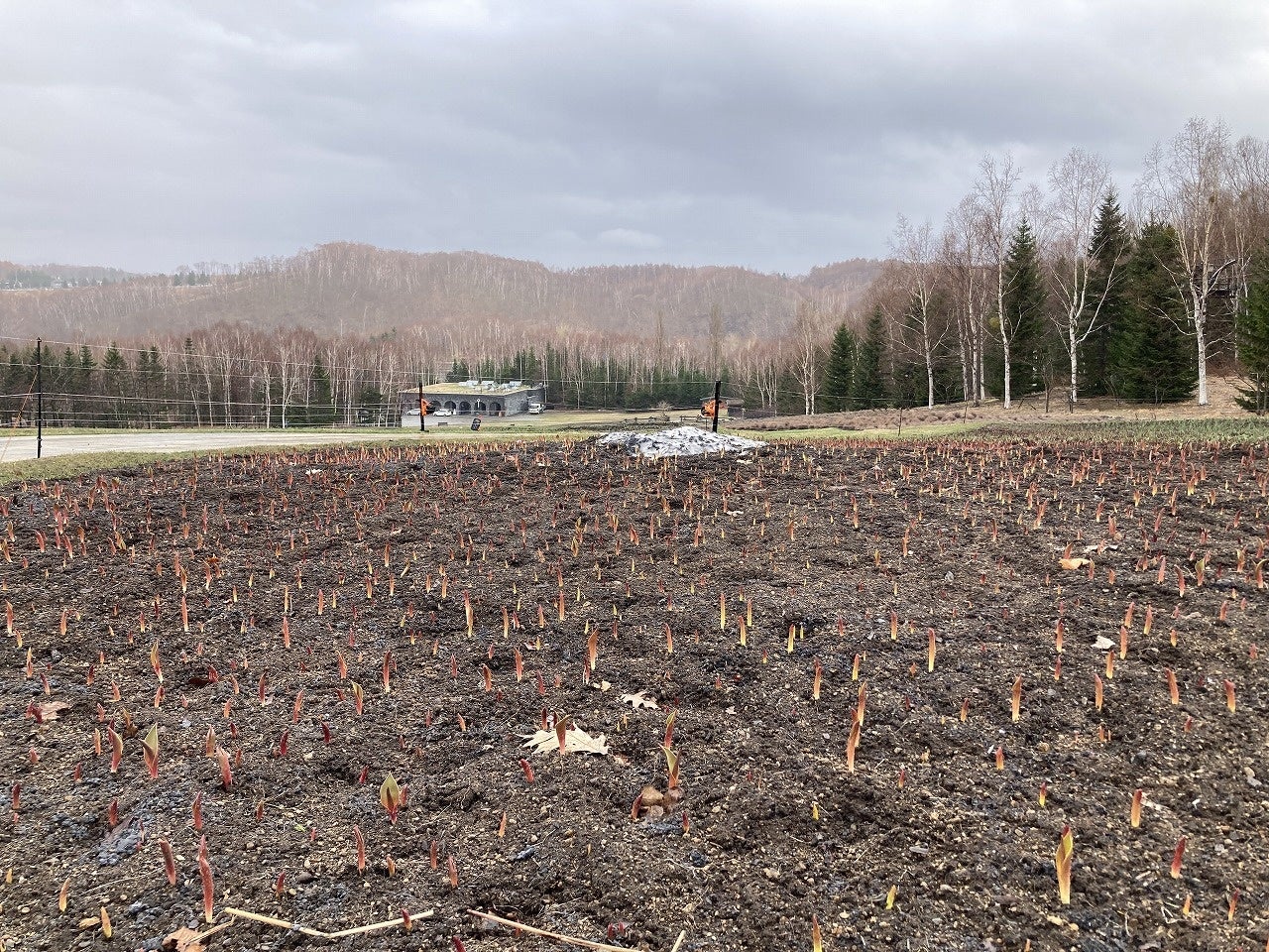 まだ一部に残雪がありますが、融雪の進んでいる場所では、チューリップの芽が出ている様子を見ることができます。