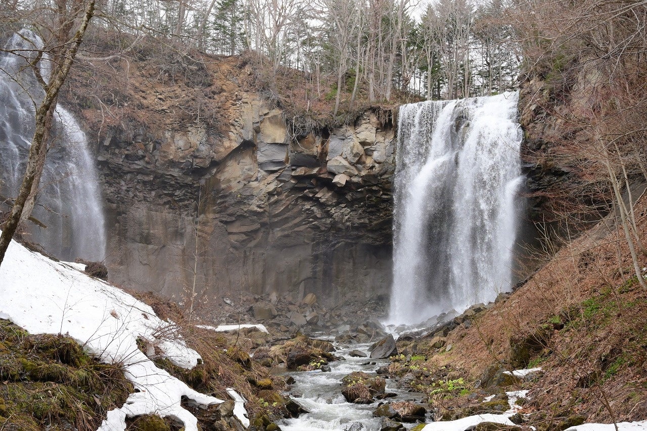 園内では、エゾノリュウキンカ、フクジュソウなどの早春の花々や雪解け水で迫力の増したアシリベツの滝などを楽しむことができます。
