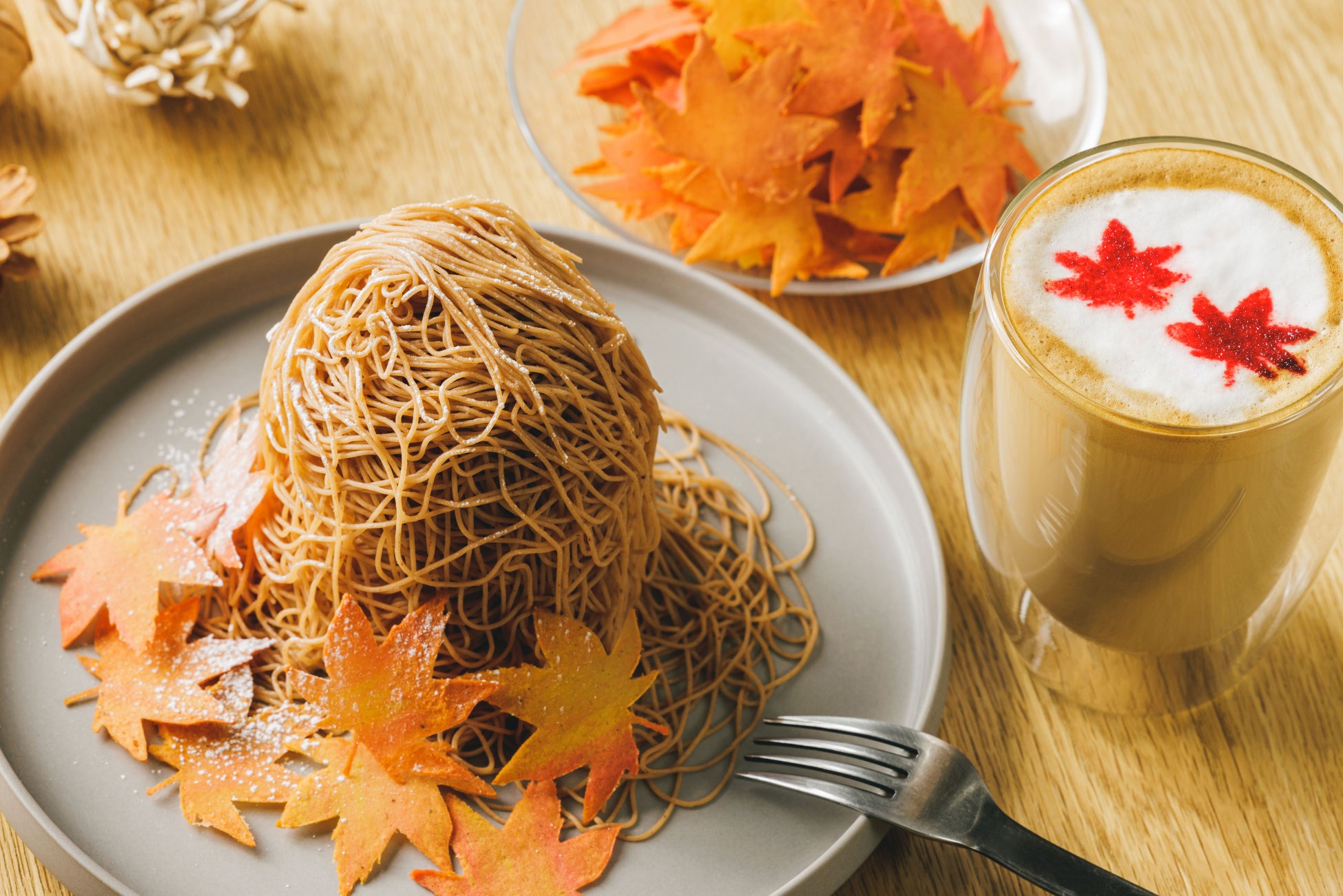 #盛れる紅葉モンブラン(無限もみじトッピング付き)、もみじラテ