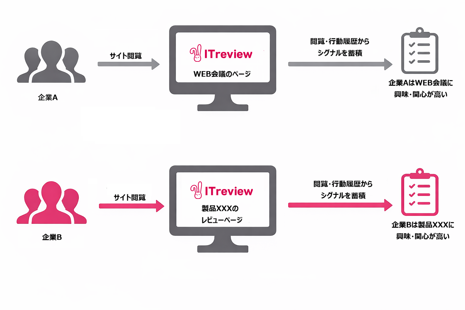 一方、IT製品・サービスを提供するベンダー企業に向けては、レビューデータの提供に加え、「どの企業が、いつ、どの製品やITカテゴリーに興味を持ち、どの製品と比較しているか」といった行動履歴をもとにしたインテントデータを提供し、B2Bマーケティングや営業活動を支援してまいりました。