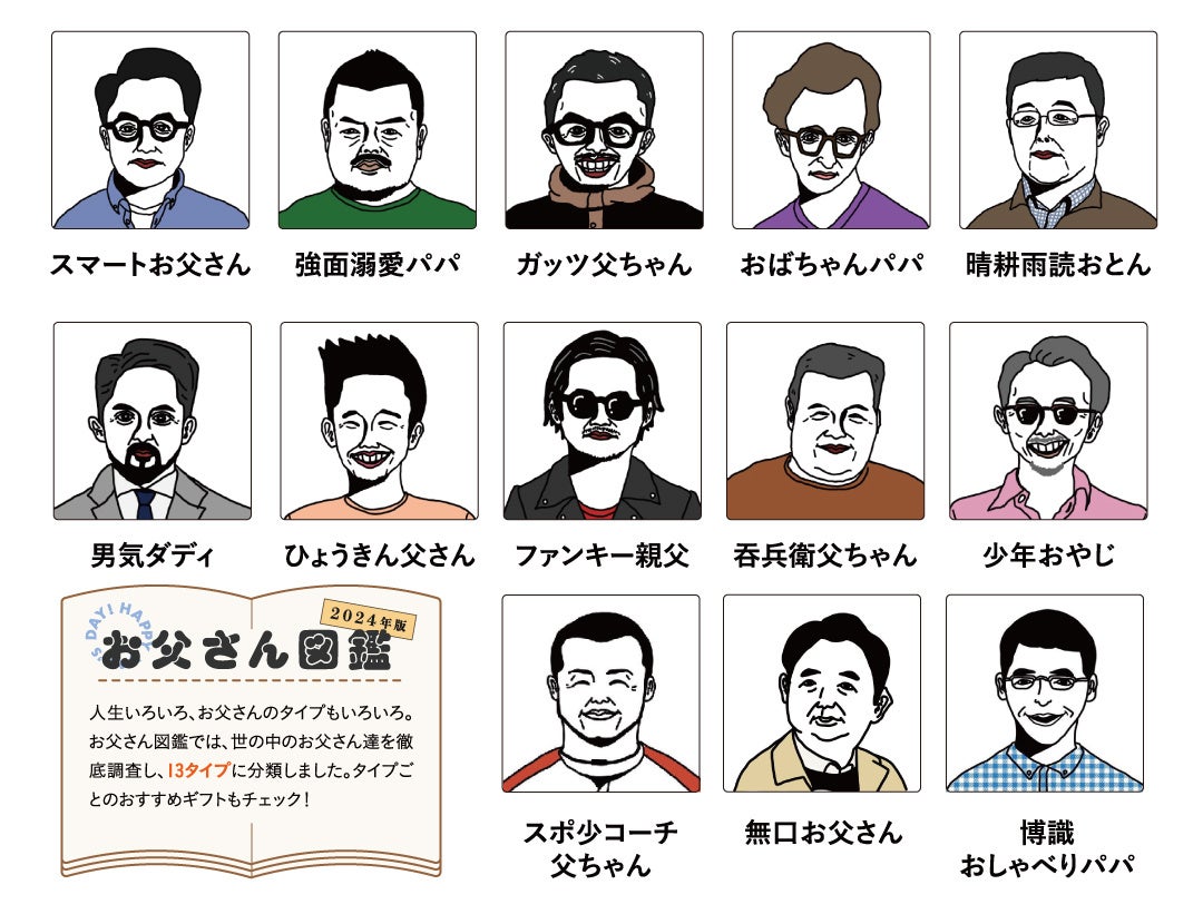 「お父さん」と一口に言っても、その個性は十人十色。お父さんの性格や趣味、好きなものを考慮して喜ばれるギフトを贈りたい。「dōzo」では、2023年よりお父さんの性格タイプに合わせておすすめのギフトを提案する「お父さん図鑑」を制作しています。大好評を得て、今年はお父さんタイプを増やし、全13種類のお父さんタイプに合わせたギフト選びをご提案。さらに多数のオンワード樫山のファッションアイテムを加えた見ごたえたっぷりのラインナップです!