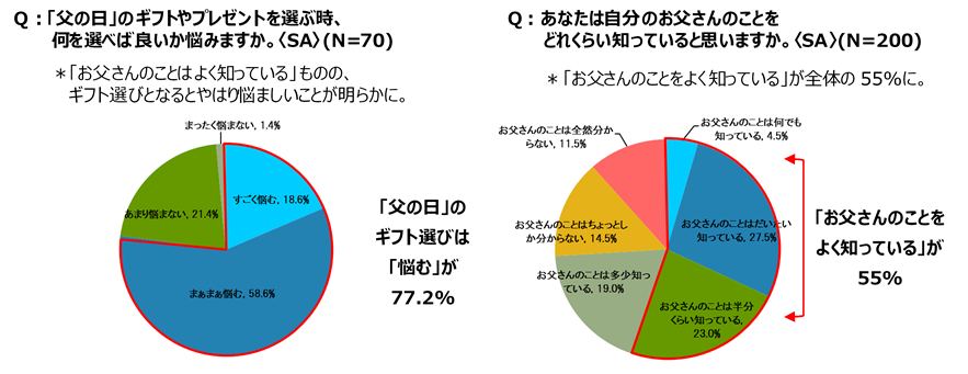 「dōzo」が2023年5月に、「父の日」に関する調査*1を20代~30代のMZ世代を対象に実施したところ、約8割が「父の日のギフト選びは悩む(77.2%)」と回答。では、お父さんの事を全然知らないのかと思いきや、5割以上が「お父さんのことをよく知っている(55%)」と、意外にも父親への理解度が高めな結果に!?「お父さんの事を知っているけど、何を贈るかは迷う・・・」というMZ世代が多数存在することが明らかになりました。