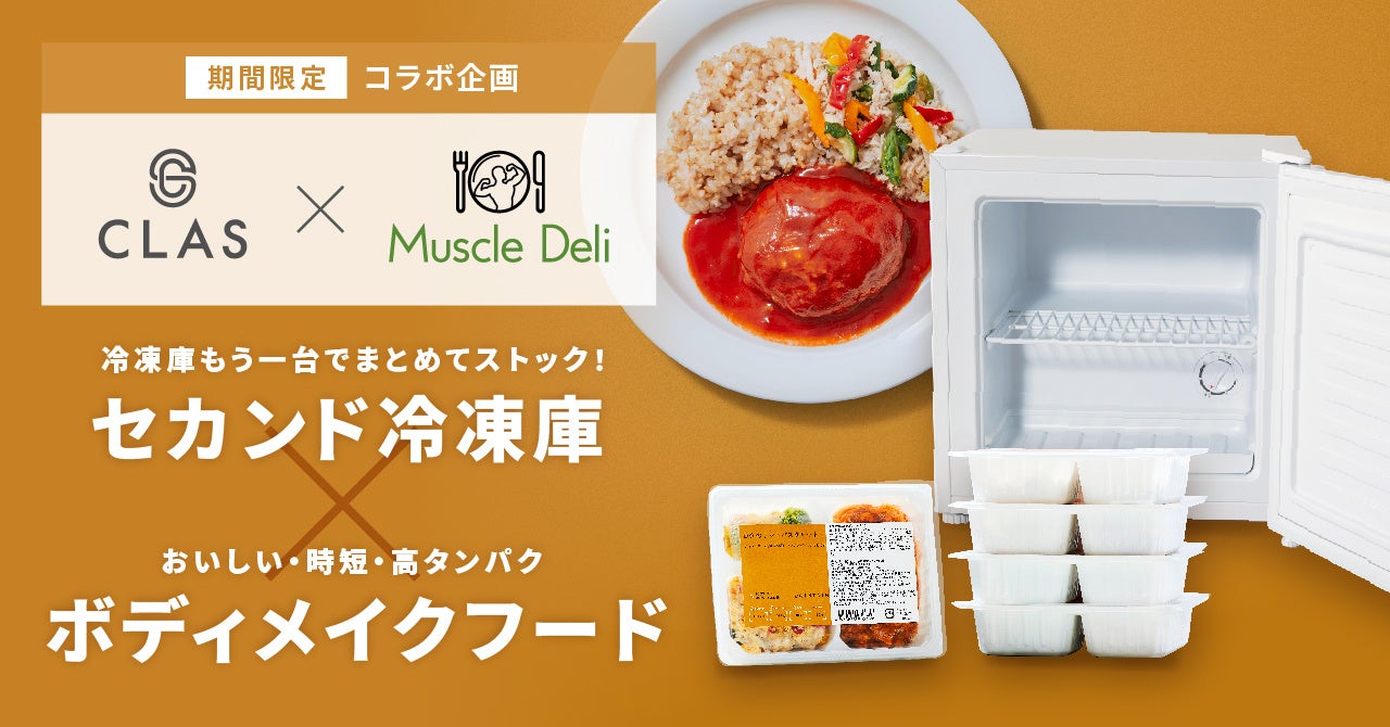 持たない、捨てない社会をつくる株式会社クラス(本社:東京都目黒区、代表取締役社長:久保 裕丈、以下、「CLAS」)が運営する、家具・家電のサブスクリプションサービス「CLAS(クラス)」は、ダイエットやボディメイクを食でサポートする株式会社Muscle Deli(本社:東京都渋谷区、代表取締役:西川 真梨子、以下「マッスルデリ」)と【セカンド冷凍庫✕ボディメイクフード】の2つのコラボ企画を本日2022年10月4日(火)より期間限定で開始いたします。