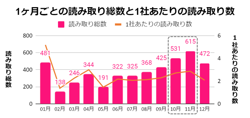 - 緊急事態宣言明けの10月、11月の読み取り総数は最多