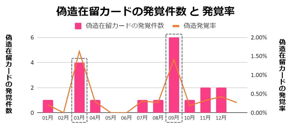 - 偽造在留カードが発覚率は、卒業シーズンの9月と3月が最多