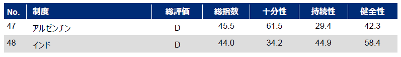 長寿化、高金利、介護費用の上昇によって、年金制度を支えるための政府予算への圧力が高まっており、今年は全体的に点数がやや低い結果となった。中国、メキシコ、インド、フランスを含むいくつかの制度が、近年年金改革に取り組んでいる。なお、本年9月に発表された中国における最新の年金改革は、指数には反映されていない。