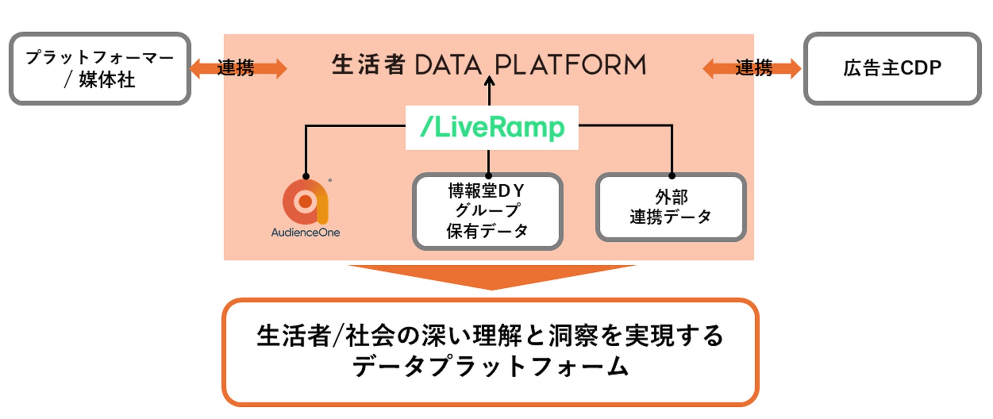 博報堂DYグループとLiveRampは、2022年より博報堂DYグループが開発する国内最大級のDMP「AudienceOne®」と連携し、確定データIDによる次世代データエクスチェンジ環境を提供してまいりましたが、本契約により、IDをベースとした「生活者DATA PLATFORM」の構築を開始いたします。具体的にはAudienceOne® IDとの連携や博報堂DYグループが保有する大規模な生活者行動データとの連携、外部データとの連携を強化し、生活者/社会の深い理解と洞察を実現するデータ基盤を構築していきます。