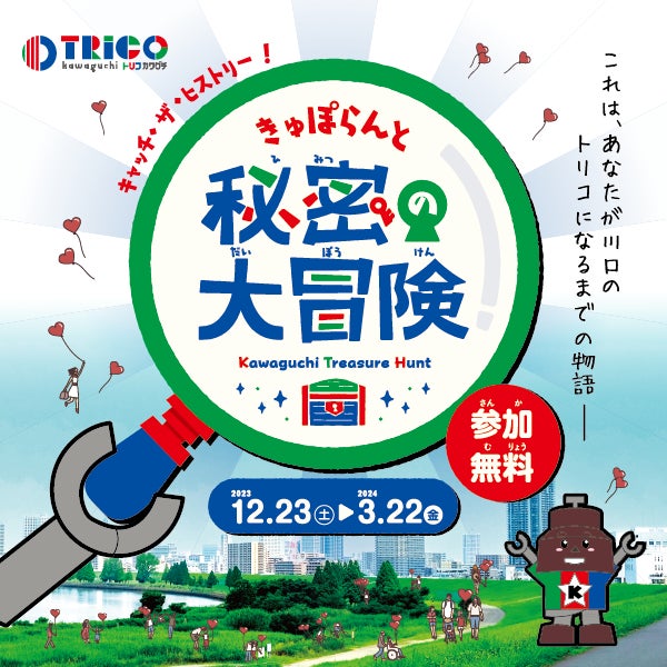 本イベントは川口市とタカラッシュが共同で実施する周遊体験型のイベントで、川口市公式地域情報ウェブサイト「トリコカワグチ」と市内を捜索する宝探しを連動させることで、参加いただく方に川口市の魅力の魅力の再発見を促し、また観光資源を活性化させ地域経済に貢献いたします。