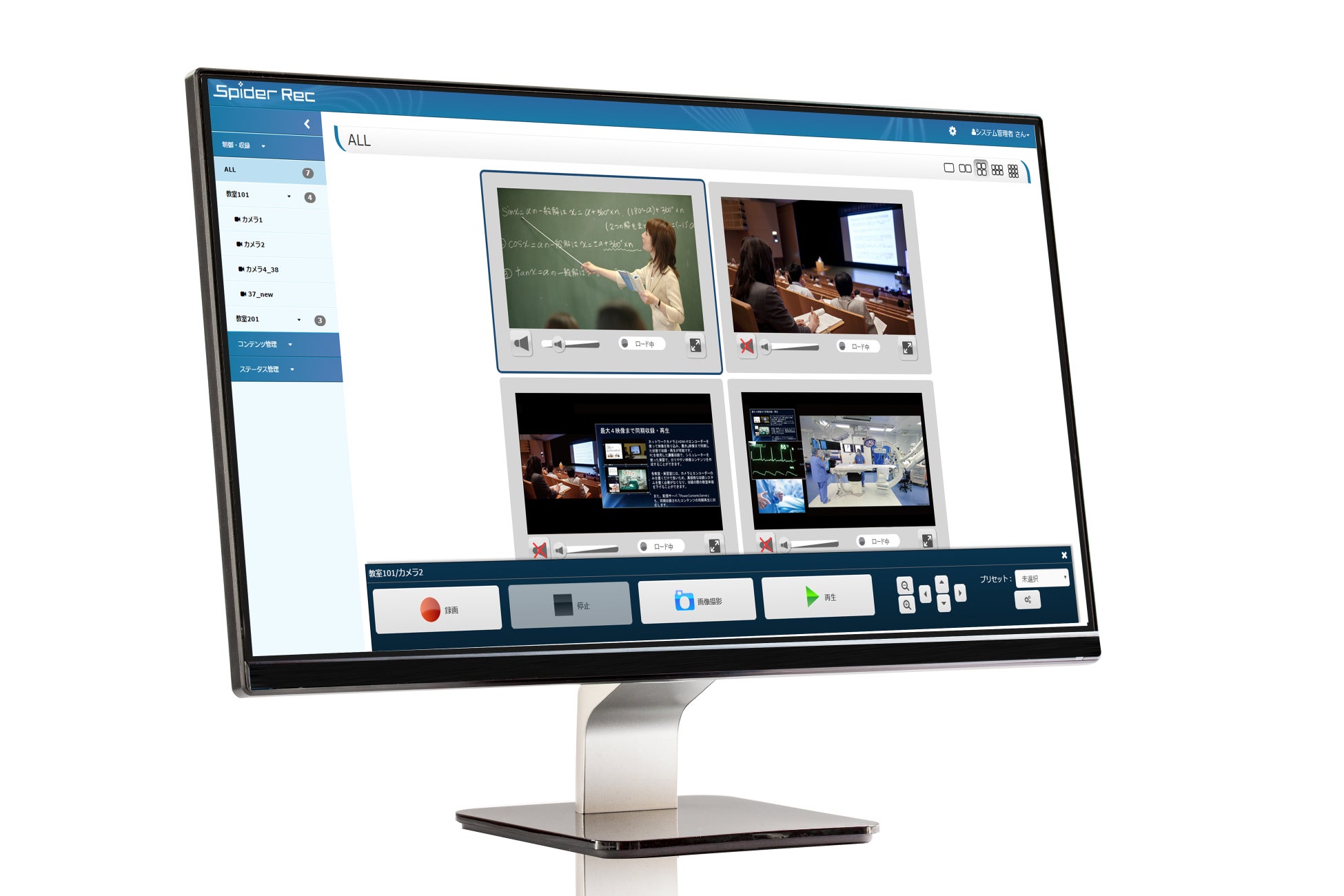 ネットワークカメラの映像を一括で収録・管理/静止 画撮影できるネットワークカメラ収録システムです。 最大 4映像まで同期収録・再生が可能。配信システムとの組み合わせで、スムーズな動画配信が可能です。